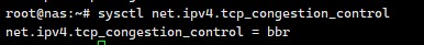 检查BBR网络是否生效,显示以下代码表示切换成功: